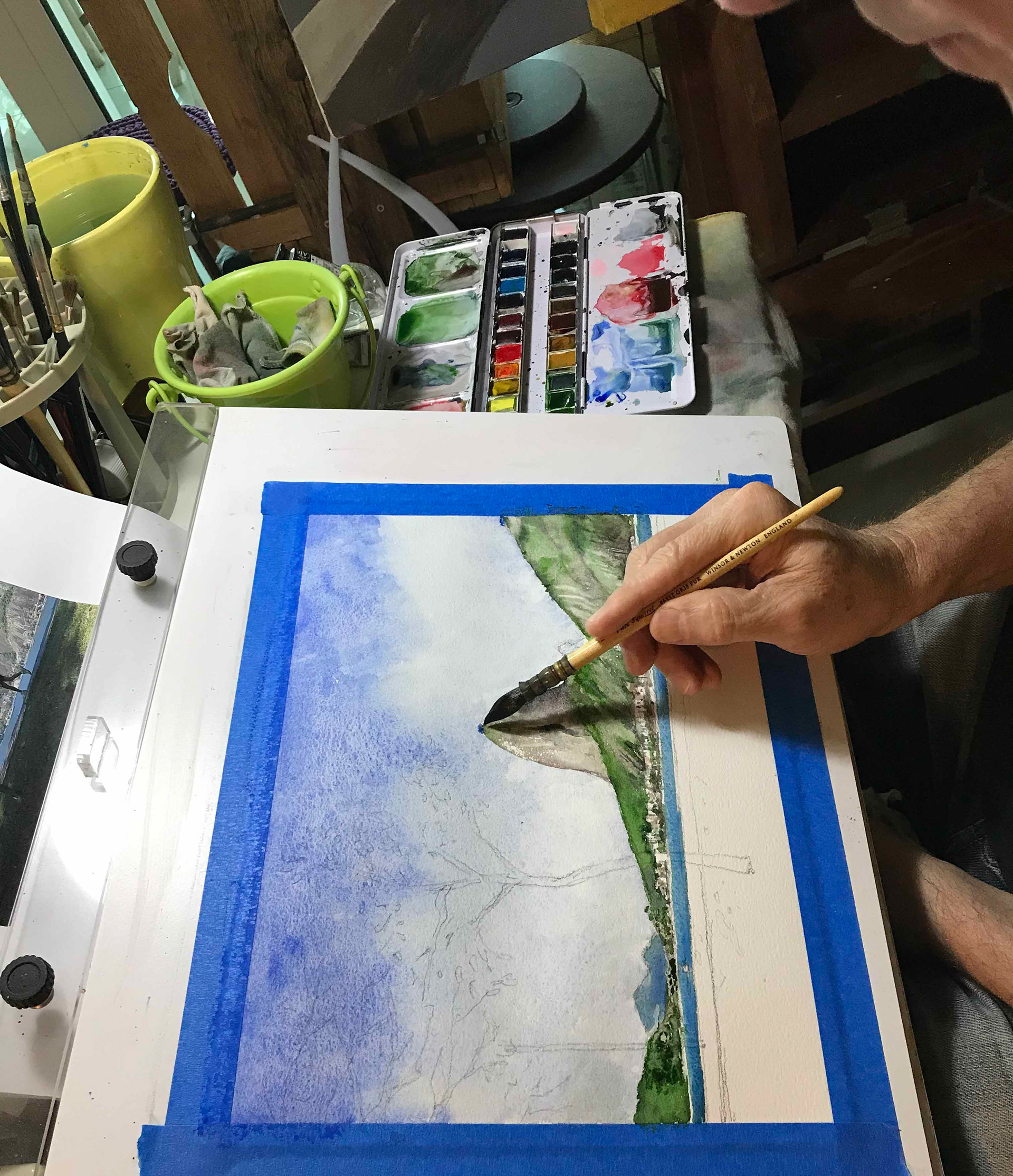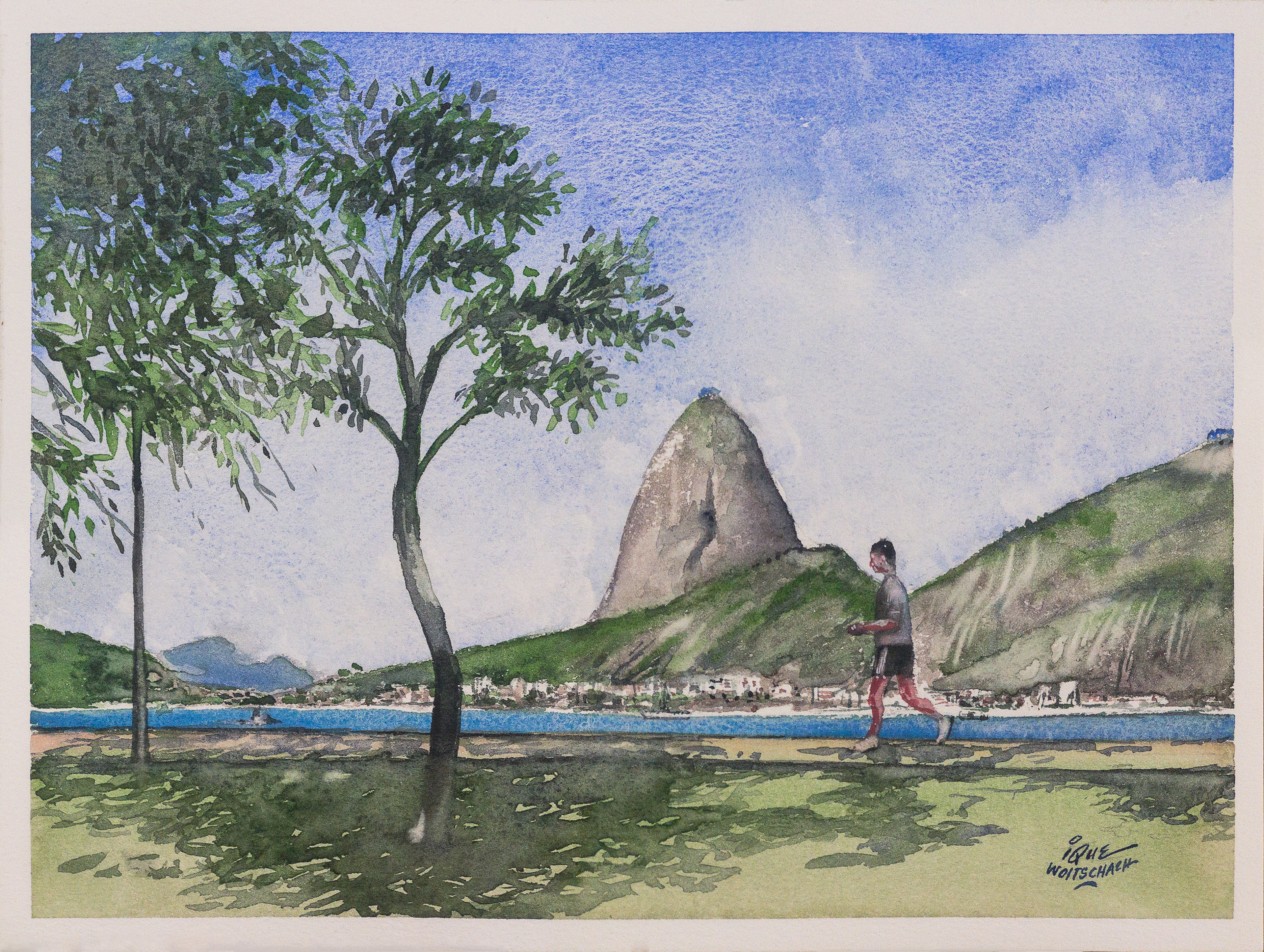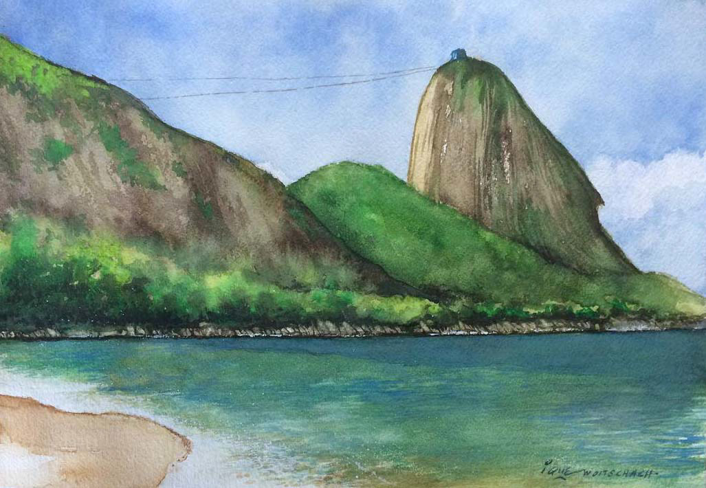 Pão de Açúcar (Sugar loaf) water color landscape viewed from Aterro do Flamengo, the greastest public park in Rio, close to the traditional Santa Teresa and Lapa and right next to downtown.